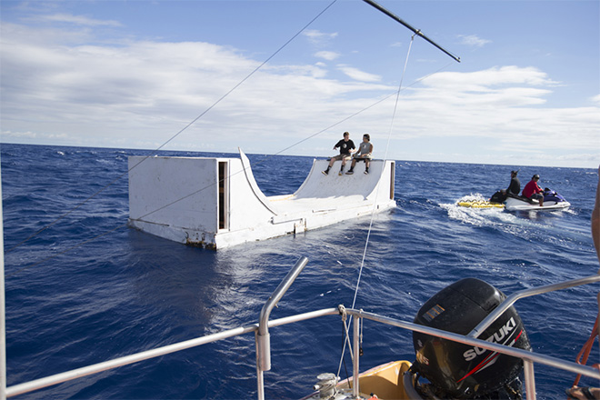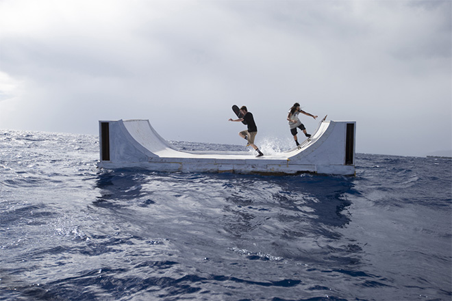 French skate, surf, and snow culture magazine Desillusion have unveiled some behind-the-scenes photographs from the making of Volcom’s latest advertisement. The incredible floating mini ramp was built by Volcom for their upcoming full length movie “True To This”, which aims to capture the “energy and artistry of board-riding in its purest forms” and will feature skateboarding, surfing, and snowboarding.