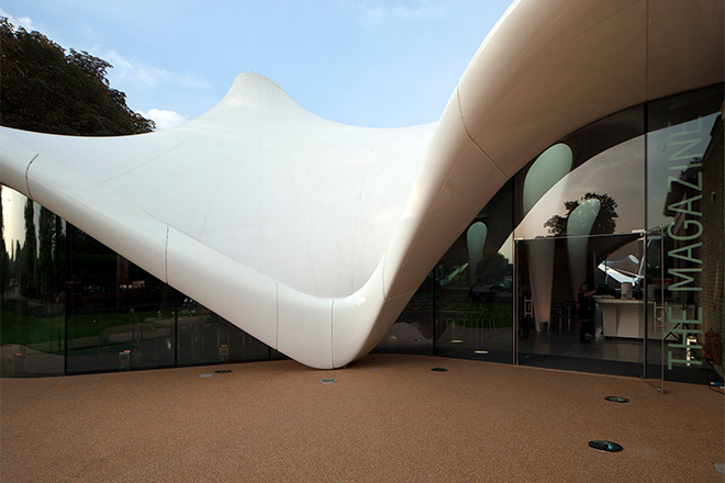 Check out the Serpantine Gallery’s new extension designed by architect Zaha Hadid. Located just across the Serpantine river from the main building, the 900 square meter Serpentine Sackler Gallery occupies a 200-year-old former gunpowder store which was renovated into gallery spaces. A swooshing cafe and events space has also been added to one side of the structure, constructed in a way that makes it look like an organic growth on the side of the original brickwork. The extension has been designed to to complement the calm and solid classical building with a light, transparent, dynamic and distinctly contemporary space of the twenty-first century. The synthesis of old and new is thus a synthesis of contrasts. The new Gallery is named after Dr Mortimer and Dame Theresa Sackler, whose Foundation has made the project possible through the largest single gift received by the Serpentine Gallery in its 43-year history. Major funding has also been awarded by Bloomberg, long term supporters of the Serpentine as well as sponsors of the opening exhibition. The first exhibition at the gallery will also be the first UK exhibition by Argentinian artist Adrián Villar Rojas, who creates bold and striking installations from concrete, clay and stone. At the same time, in the Serpentine Gallery, there will be a major retrospective by Italian sculptor Marisa Merz, who received a Lifetime Achievement Award at the 2013 Venice Biennale.