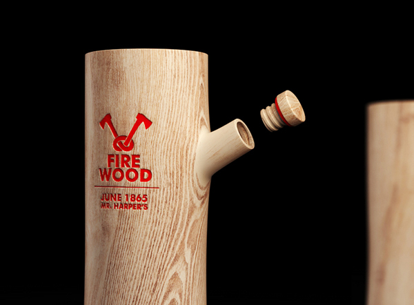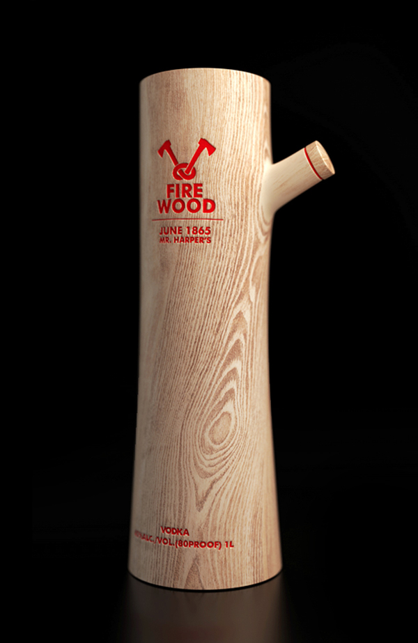 Firewood Vodka in its newly designed packaging by Constantin Bolimond. The lumberjack inside of your guests will show its true buffalo plaid colors when they feast their eyes on this outdoors-man classic. Instead of a glass bottle, the presentation features a bark-peeled log with a knot disguised for pouring purposes. Firewood – pieces of wood used for burning in furnaces, fireplaces or a fire for having heat and light. [This definition of Firewood gives Wikipedia.] Vodka the Firewood, warms not only Your body, but Your soul too. With just a few sips of the bottle contents, You don’t need to burn firewood.