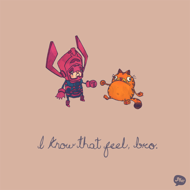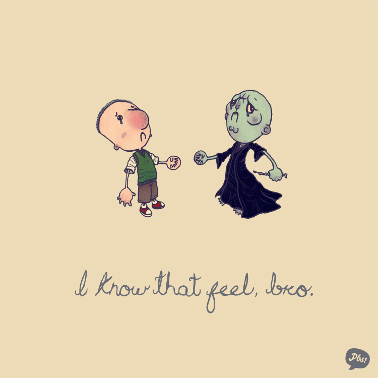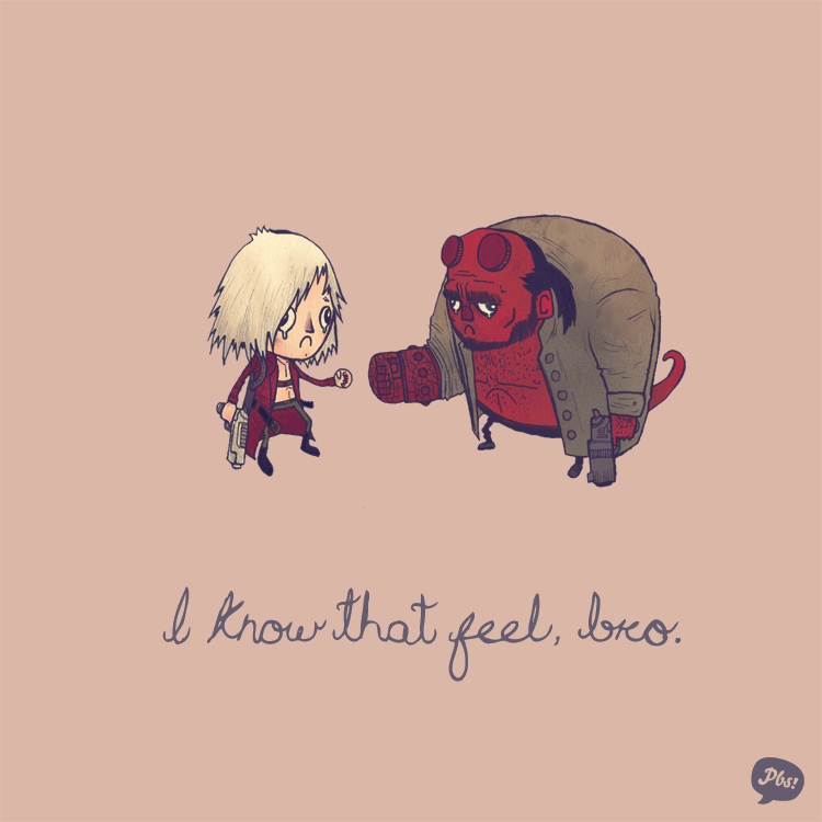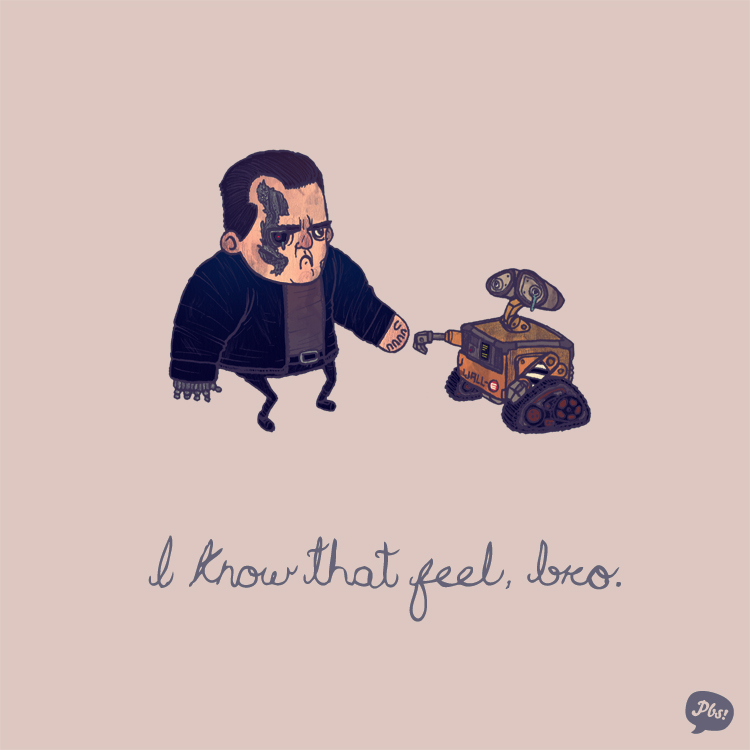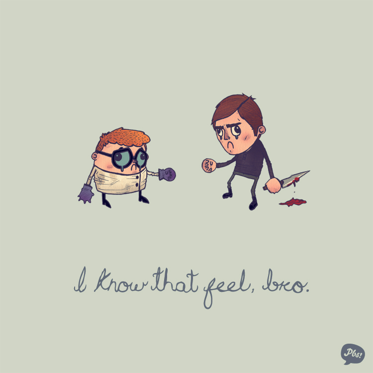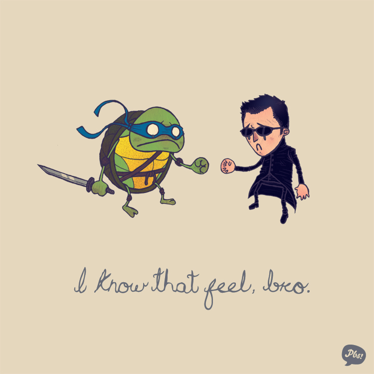 Created by an artist known only as Paper Beats Scissors, this collection of illustrations depicts the single moment when two different characters from pop culture meet and give each other an empathetic fist bump due to a similarly depressing trait that they both share. For instance, when the Dark Knight and Harry Potter meet for the first time, they fist bump the fact that they are both orphans. There are a huge amount of characters included within the series from film, television, video games, comic books, animation and technology.