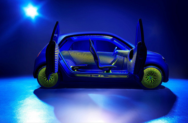 Renault unveiled a striking blue concept car by Ross Lovegrove, a British furniture and product designer, at the Salone Internazionale del Mobile di Milano furniture show. Renault says that the Twin’Z is a fun, modern, artistic take on a city car that draws inspiration from some of the Renault’s most iconic models, such as the R5 and the Twingo. The Twin’Z is an all electric city car featuring rear-wheel drive and a rear-mounted electric motor. The top speed is 81 mph and the vehicle has a driving range of 100 miles on a charge. The Twin’Z’s glass roof is designed in layers and incorporates an array of LEDs which form animated patterns intended to enhance the overall experience of the driver and passengers. Inside, the seats have been upholstered in a 3D woven, self-cushioning, lightweight blue textile which is both waterproof and flame resistant. The conventional dashboard has been replaced by a single tablet with a touch-screen display that controls everything from the vehicle’s heater systems to the roof. A smartphone display’s the vehicle’s speed, range-related information and the principal warning lights. Renault chose to reveal its concept car at the ‘Salone Internazionale del Mobile di Milano’, to prove its determination to reach out to a wider audience by targeting those who are more sensitive to design.