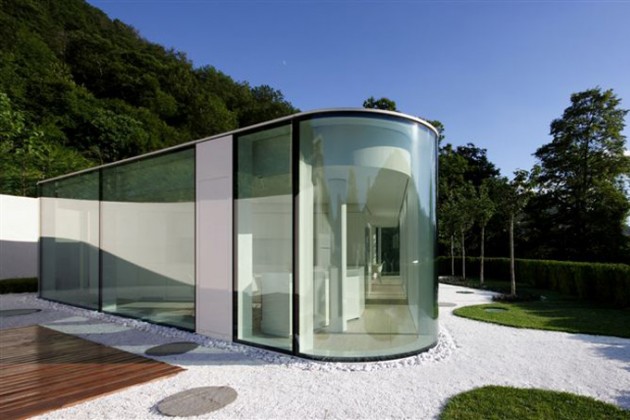 Lake Lugano House, is one fascinating oval glass house, and it is located in Brusino Arsizio, Switzerland. This amazing project is made by jm architecture. The main concept of the project is architecture with an oval shape and highly stylish interior design.