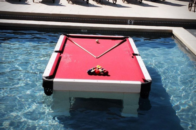 While most of the time we are looking for a place inside the home to situate the table, this waterproof pool table lets you plant your billiards setup right in the middle of the swimming pool.