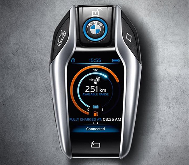 Because this key is special, with its high resolution LCD displaying much of the vehicle’s vital signs at any time—your screen-viewing addiction just got worse. Wanna know how much juice the i8 has left? Check the key. Wanna know if you can make it to the beach and back without any worries? The key displays the current capable range. It even indicates whether the vehicle is locked or not. BMW says i8 key uses Bluetooth Low Energy, so you won’t have to worry about much battery drain when you’re outside of your car.
