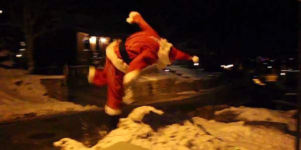 Santa Claus will be delivering gifts to children around the world this Christmas on a sleigh guided by reindeer but, in the meantime, one of his U.S. helpers is showing what would happen if jolly ol’ St. Nick went extreme. Ronnie Shalvis, a free-runner, stunt coordinator and parkour trainer from South Jordan, Utah, dressed up in a Santa suit and went to leaps and bounds, literally, to show how Santa Claus gets from roof to roof. Shalvis’ version of Santa travels by parkour, a running discipline that involves jumping, climbing and rolling anywhere and everywhere, making the landscape, in this case rooftops, a personal obstacle course.