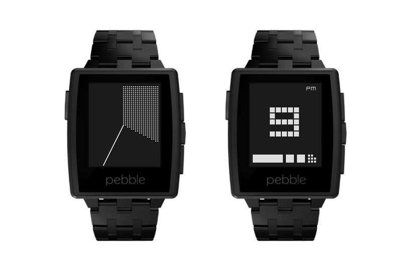 Designers Albert Salamon and Michal Zylinsk have developed ‘TTMM’, a collection of interchangable smartwatch interfaces for timepieces with black and white 144×168 pixel screens such as the pebble, kreyos, hotwatch and wellograph. Each app is available in 20 different variations and in black or white; the styles run from a business aesthetic with TTMMchart to a sci-fi theme with ‘TTMinus’. Users are able to upload, install and change the face of their clock whenever they’d like, directly using the pebble smartwatch application.