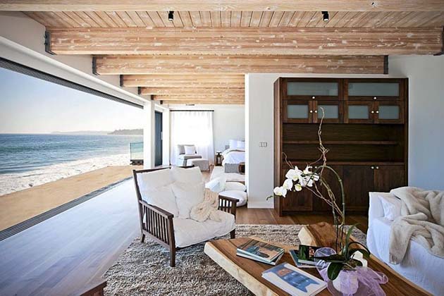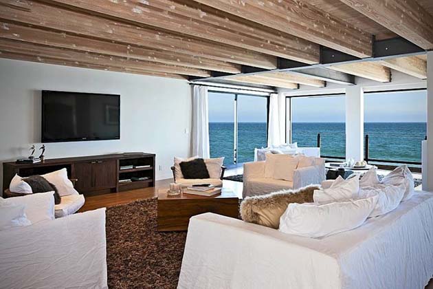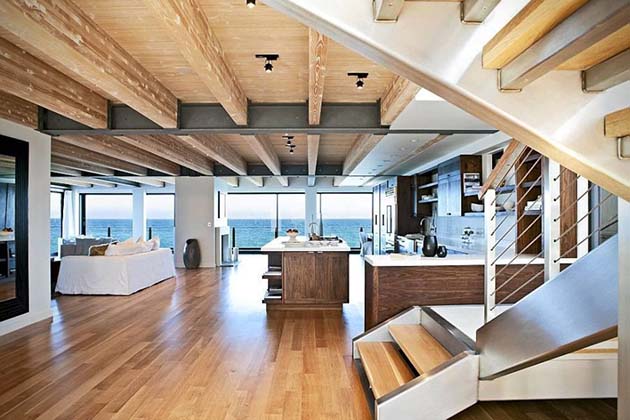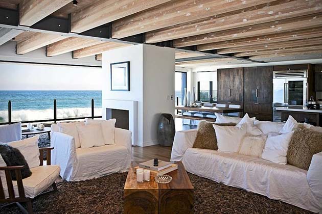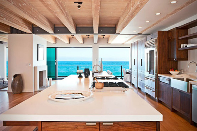 Views of the Pacific abound, as the home’s interiors include wooden beams, large glass windows that radiate a sophisticated kind of laid back chill that only $12 million can buy. Maybe it’s the open floor living plan? Maybe it’s the fact that you can fling your table scraps into the ocean? Either way, the view is worth it alone.