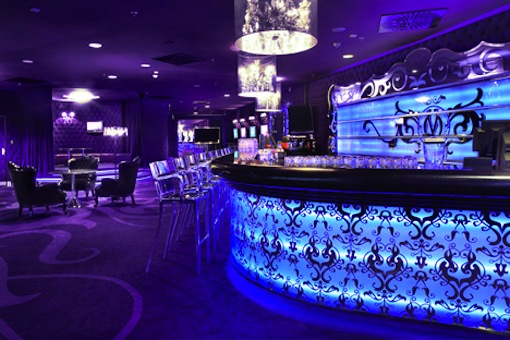 The Premiere Hall has an air of splendid theater and opera auditoria. It features numerous decorative elements, ornaments, and wall lighting details. For convenience, special comfortable seats have been placed in the hall, upholstered with cozy fabrics, and in the VIP-zone they are covered with genuine purple leather. The entire hall, although very modern, alludes by its color scheme to the tradition of grand theater and opera auditoria, which is exemplified by an impressive 9 foot chandelier made using a state-of-the-art LED technology.