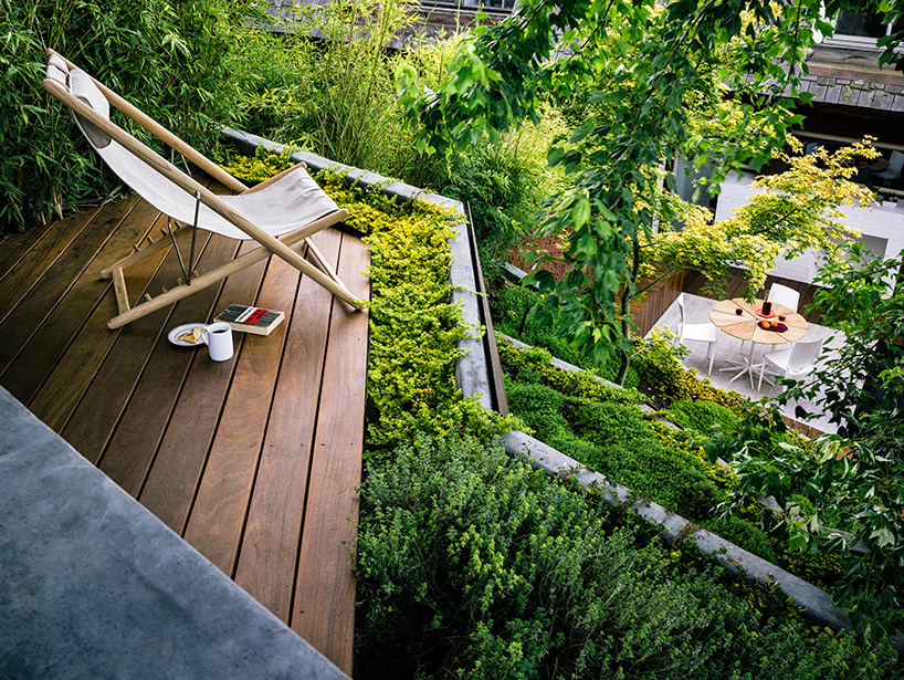 Nestled between neighboring townhouses, the ‘Hilgard Garden’ by San Francisco-based Barensfeld Architecture takes advantage of its sloping topography with a series of angular terraces. Located in Berkeley, California, the brief called for an outdoor living and entertaining area, as well as an accessible seating spot at the top of the site. Based on a Japanese maple sculpture park, a layered platform structure gently cascades down the steep landscape, referencing outstretched deciduous trees and navigating the change in elevation.