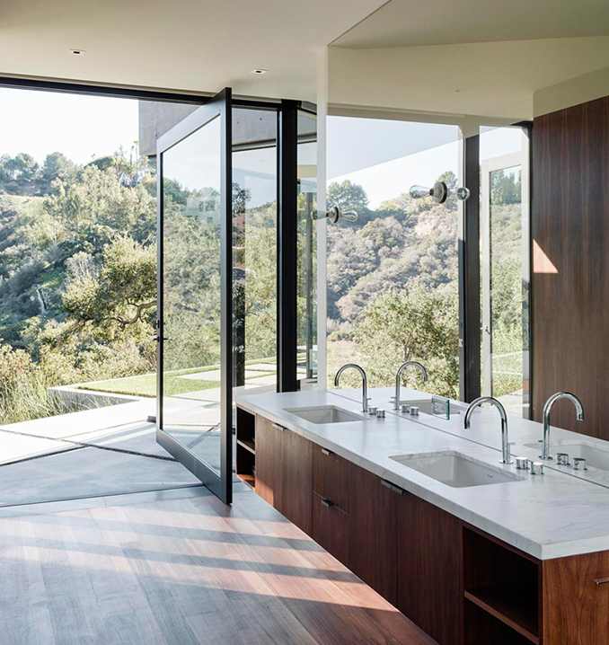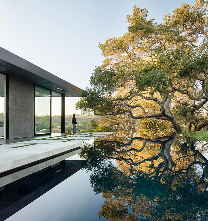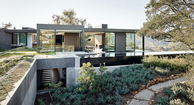 Build a massive house made of concrete in the middle of a grove of 130 beautiful protected old oak trees and you have an ugly disaster in your hands. This scenario sounds likely but it was elegantly avoided in the Oak Pass Main House that Walker Workshop designed for a private client in Beverly Hills, California. The house sits on a 3.5-acre site at the rim of a canyon, which is why the fantastic views were the main consideration of the house plan.
