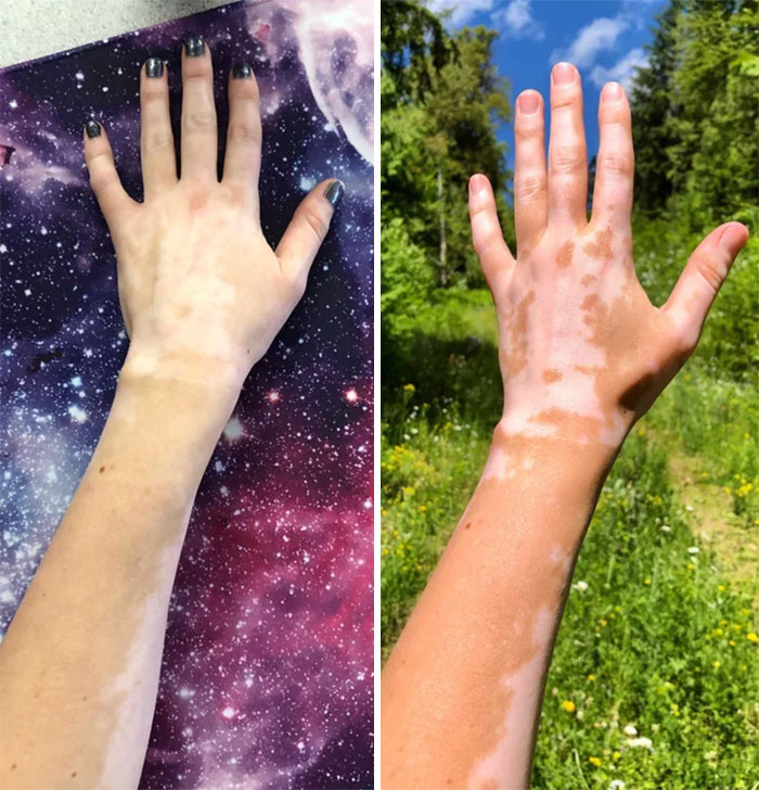 An organism gets approximately half of its DNA from each of its parents’ gametes, or their sperm and egg cells, which carry DNA from parent to offspring. In human reproduction, one sperm typically fuses with one egg to create a fertilized egg that can develop into a fetus. However, sometimes the ovaries, which are organs in the female body that produce and store eggs, release more than one egg at a time, a phenomenon known as hyperovulation. In such cases, two different sperm can fertilize two separate eggs released during hyperovulation, creating two genetically distinct fertilized eggs that can develop into non-identical twins. However, in some cases, those two fertilized eggs may fuse together during an early stage of development, resulting in a chimera made of two genetically distinct cell lines. As a consequence, instead of having cells with identical DNA throughout their body, a chimera has different DNA present in different parts of their body so that the DNA in their blood, for example, may not be the same as the DNA in their saliva. “I have two sets of DNA, two sets of blood and immune cells. The two colors of skin pigmentation on my torso is from my and my twin’s two different genetic makeups. My particular case of Chimerism is linked to autoimmune disease. I went undiagnosed for more than half my life due to the rarity of my condition. I’m now an advocate for Chimerism, it’s link to autoimmune disease and body positivity. My hope is to prevent others from going undiagnosed how I did.”