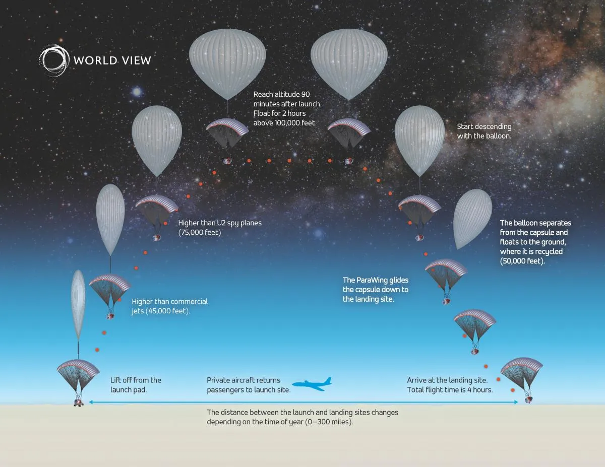 This leading stratospheric ballooning company, recently announced an expansion of services that includes the “global launch” of the first-of-its-kind, edge-of-space experience. The World View space tourism experience is the most affordable, (at $50,000) longest duration and most accessible space experience on Earth. As a purpose-first company, World View is focused on inspiring, creating and exploring new perspectives, offering participants more accessibility to space tourism experiences than ever before. World View’s mission is to bring as many people as possible to the edge of space so that at 100,000 feet, they’ll see a world without borders or species and come back driven to make the world a better place. The company believes that by reaching a critical mass of people experiencing what has been labeled the Overview Effect that humanity will be able to markedly improve the future of our fragile Earth. Clink any of the photos for more information.
