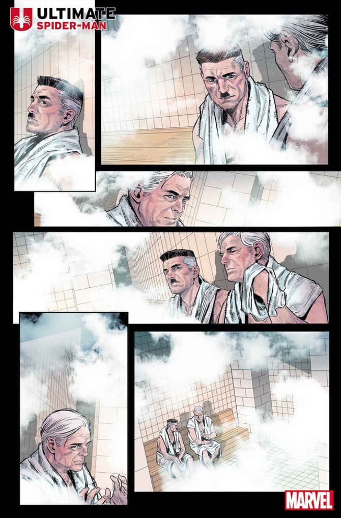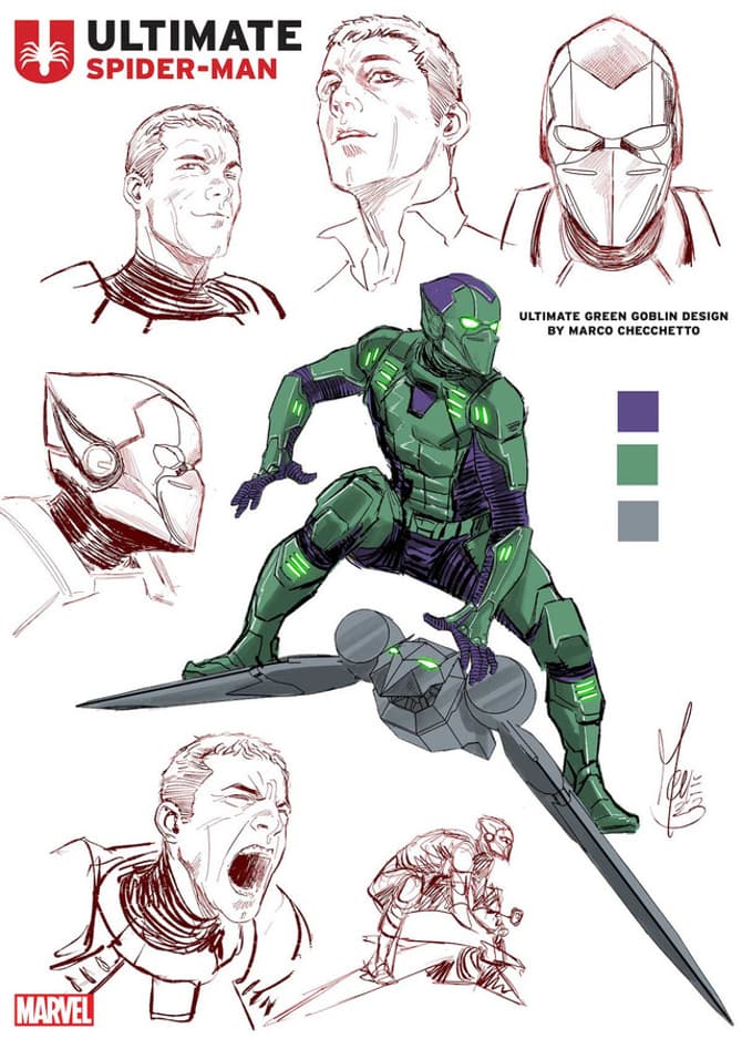 Let’s return to Spidey, though, and he has his first supervillain in this newly released preview: Shocker. ”My love for this character is no secret to anyone,” says Checchetto. “As soon as I received Jonathan Hickman’s plot of the series, I was immediately fascinated with how he managed to create something truly fresh and new, while keeping the spirit and essence of the web-slinger intact. I really loved the dialogue and got chills drawing these scenes. We have the opportunity and privilege to create our version of Spider-Man, and for me, to create the entire design of the series.”