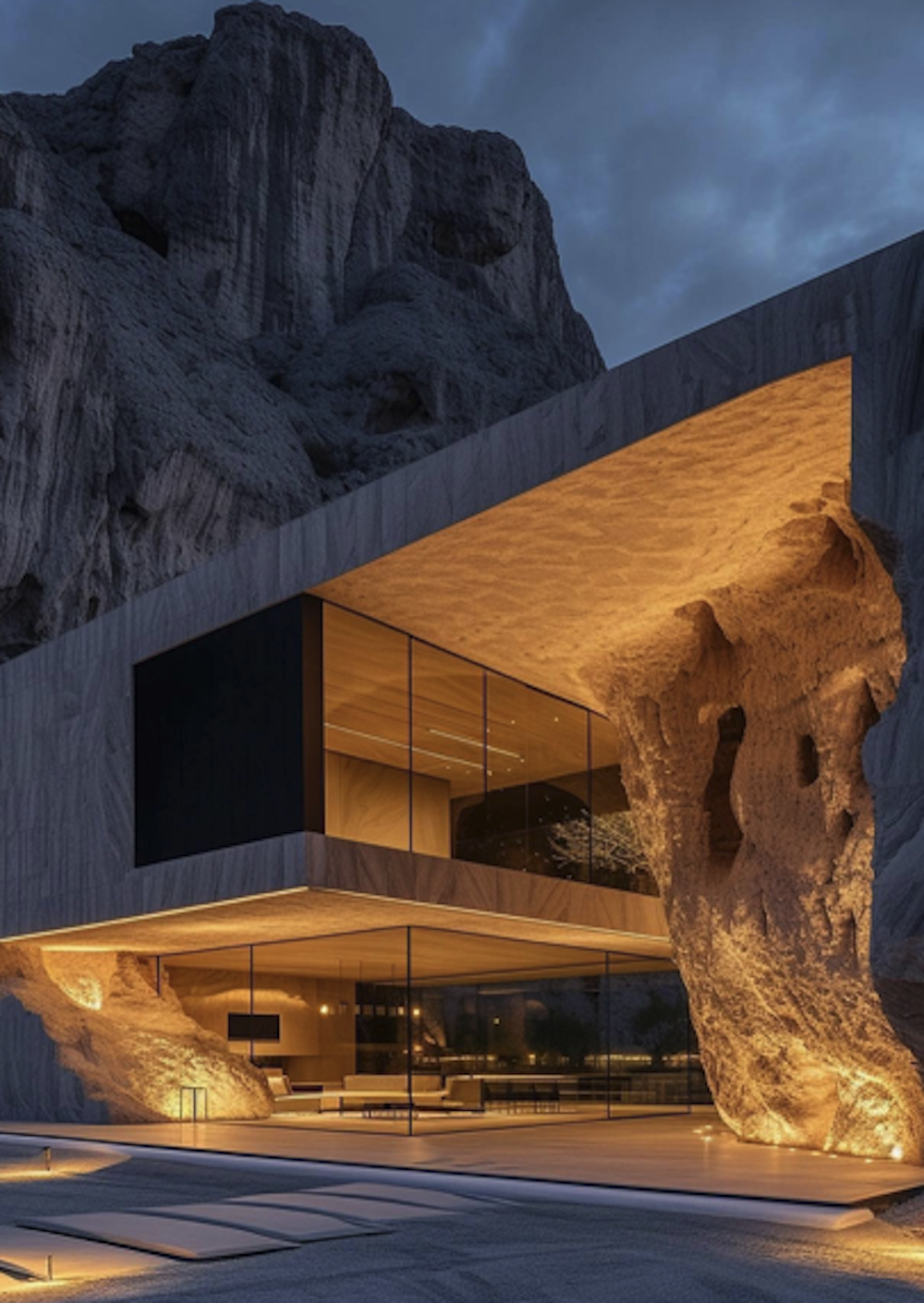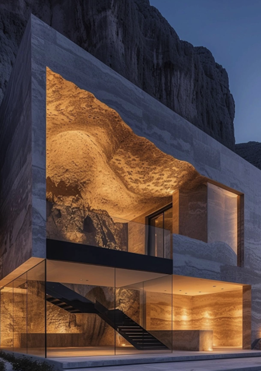 There are certain mysteries in life that just shouldn’t exist… like who’s responsible for this? Where is this place? Or can I stay here? Unfortunately, we don’t have the answers to any of these. (cry-face emoji) but what we do have are the designers photos of this futuristic fortress of fortune. Between the glass walls and railings, the ceilings of this magnificent cavern are jagged and emphasize the building material of this structure (stone) to perfection. We’re not sure if it was carved directly out of the song face, or if its was just constructed to imitate, but the results are gorgeous enough to make a rock cry. Check the method.