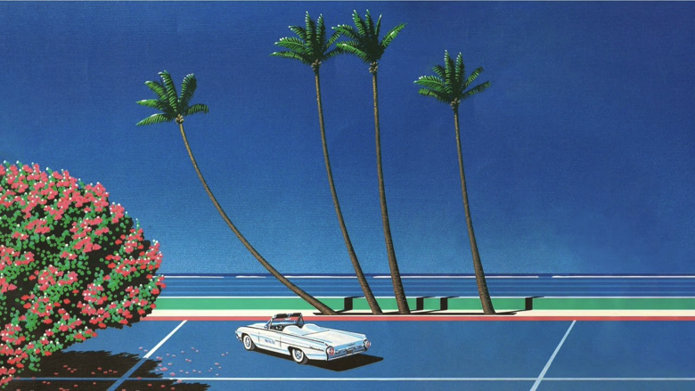 Inspired by American pop art and influenced by British artists like David Hockney, Nagai focused on reimagining the American landscape of the 1950s. Drawing from predecessors, he depicted deep blue skies, serene seaside scenes, and tranquil urban landscapes throughout the late 1970s. His work gained momentum in Japan around the early 1980s, coinciding with the emergence of City Pop.