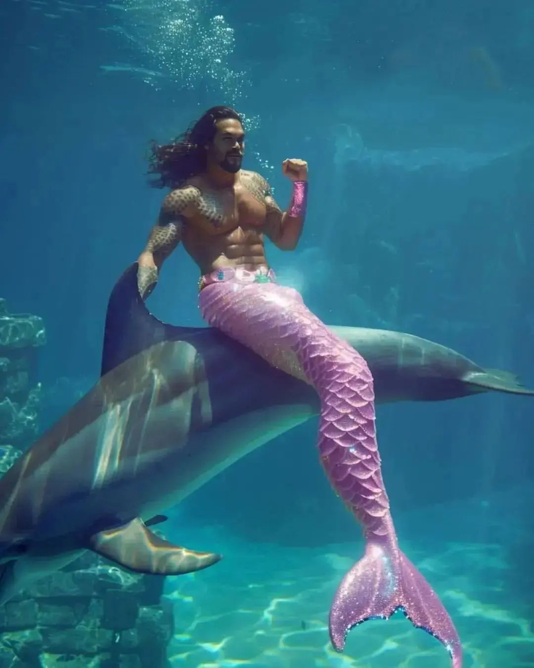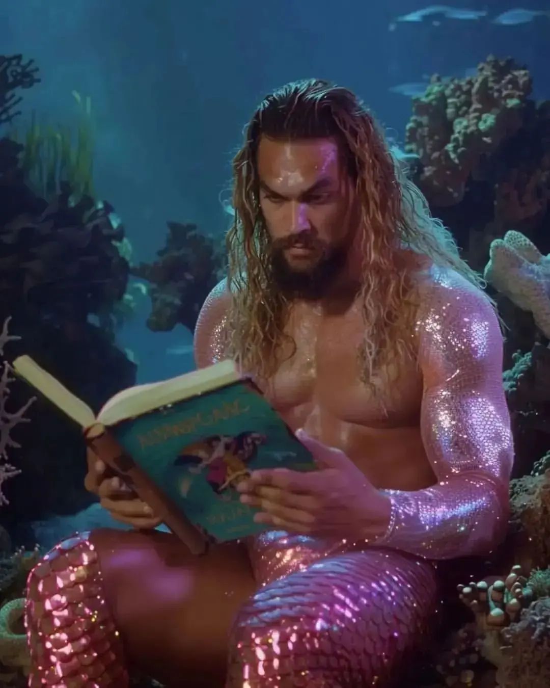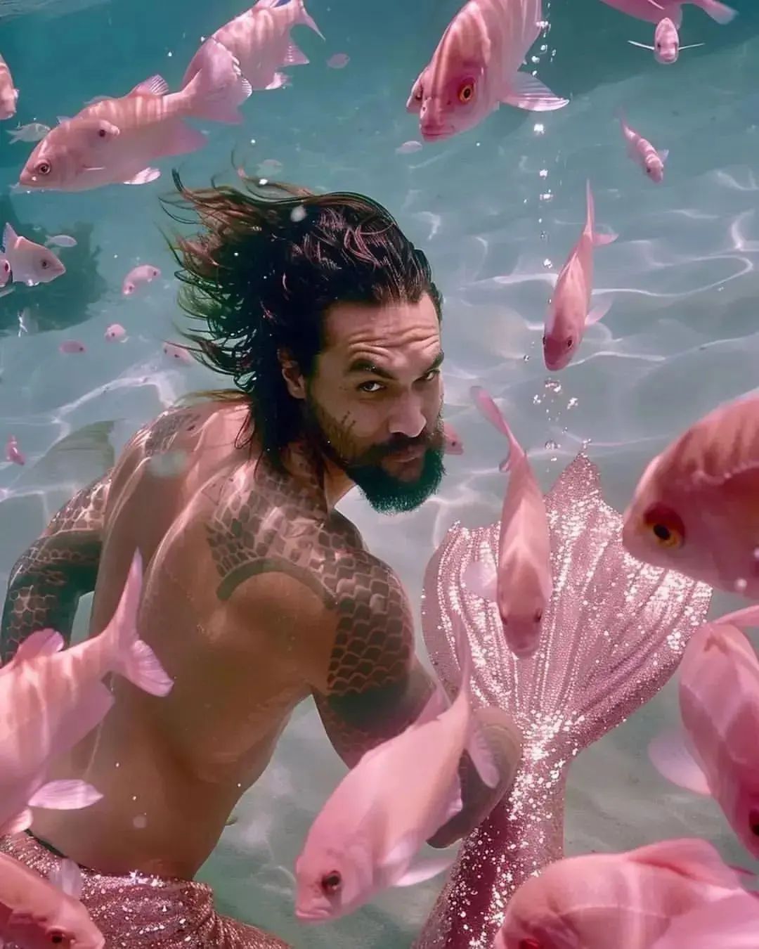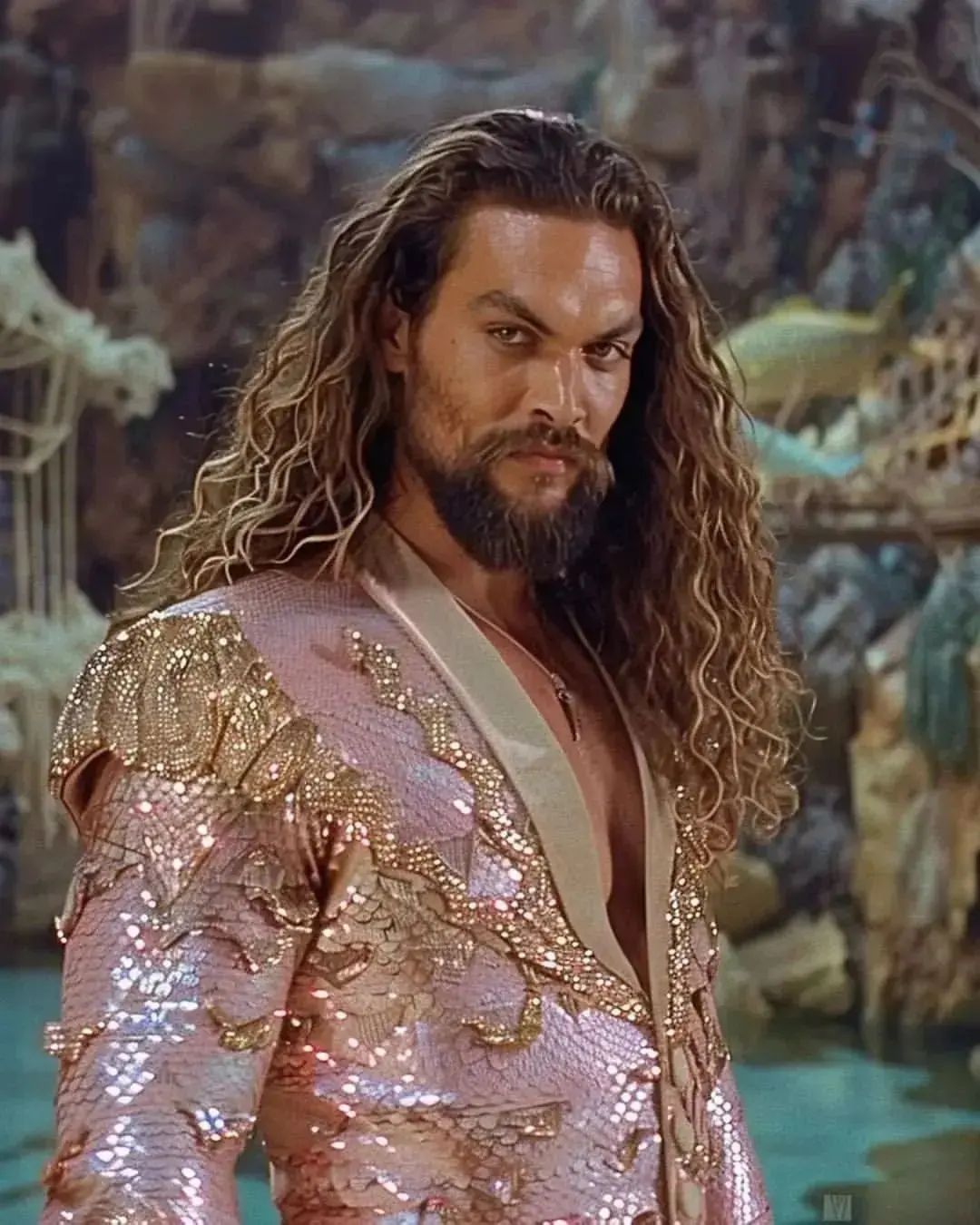 Someone thought it would be funny to AI generate Jason Mamoa as daintily of an aqua-lady as possible… and let us just tell you, it didn’t work. This man still looks like he’d FOLD an opponent up like 4th grade love letter. Even though this is a look he won’t be sporting for any 2025 Aquaman sequel, it gives us the giggles just to look at. This look and even the backgrounds are the love child of @wearearada on IG.
