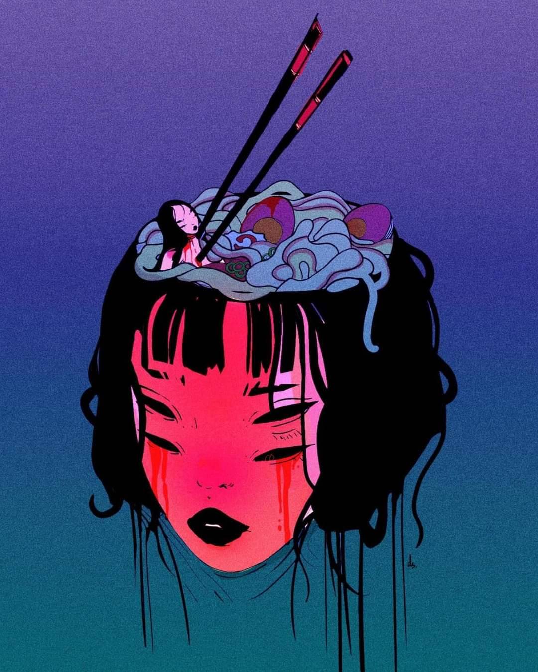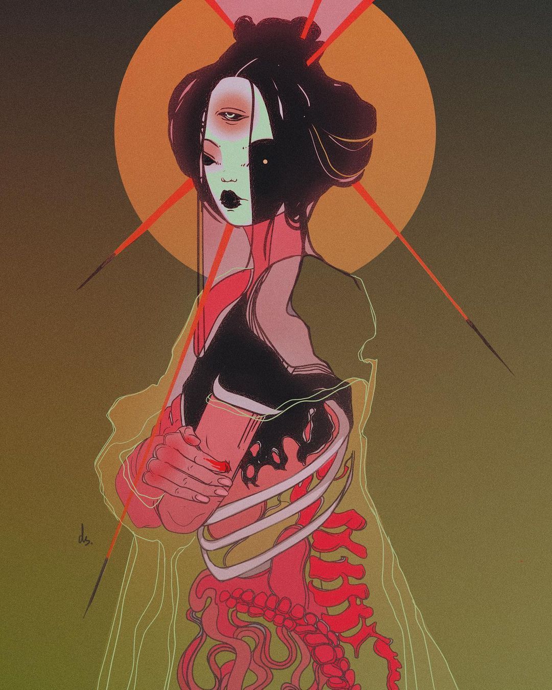 CONFUSING title to a post, we know. However, that shouldn’t dissuade you from taking a look at this digital artist. (no seagulls were harmed in the making of this post). The Japanese styled artworks seem to demonstrate the beauty of the female form with a bit of a multi-eyed twist. The intricate lining of each figure comes with tiny details that impress even the most untrained of eye, and seem to be appealing to anyone who loves something dope. The artworks are also tantalizing while not being over sexualized, which is a balance as hard to strike as DeadSeagulls as the color combination of ingrained in the works. Take a look at more below and enjoy.