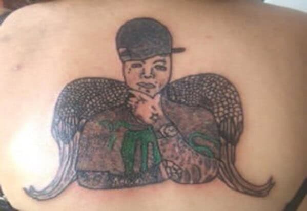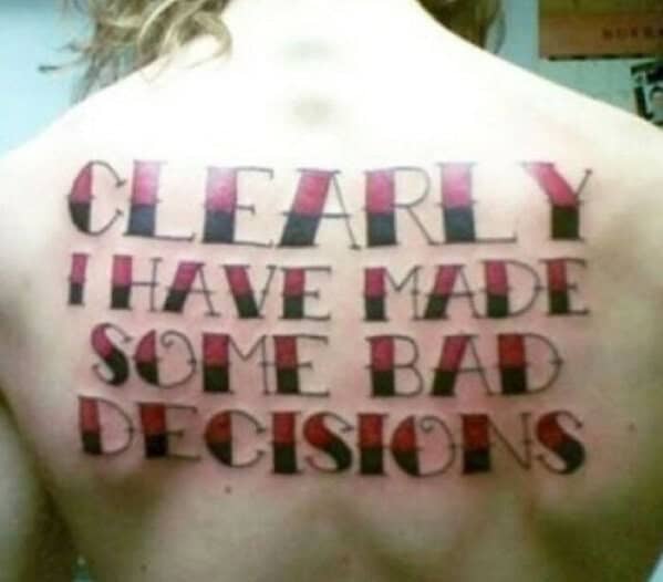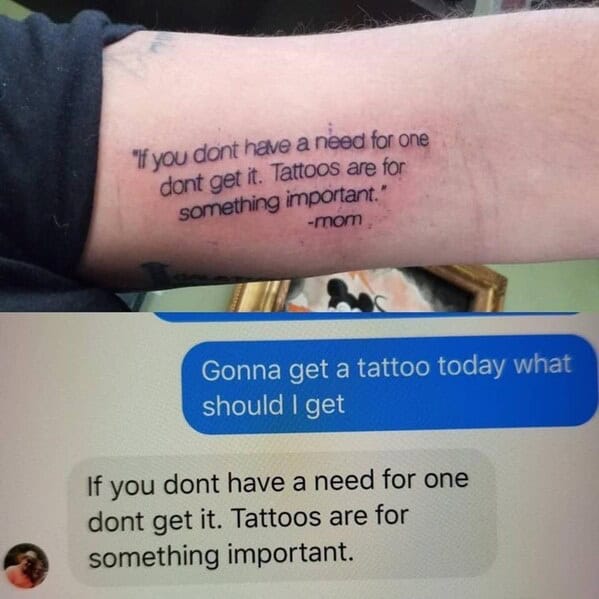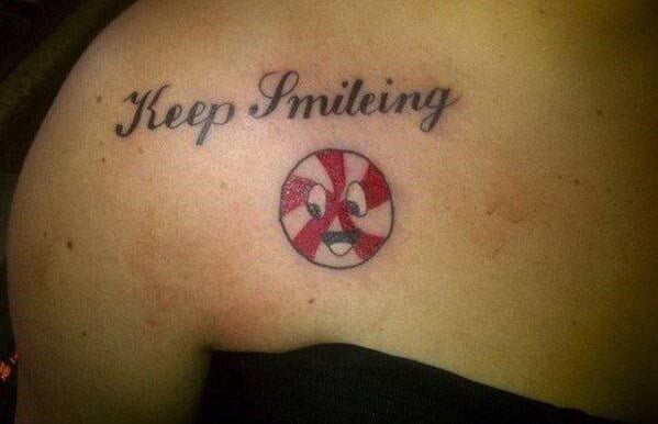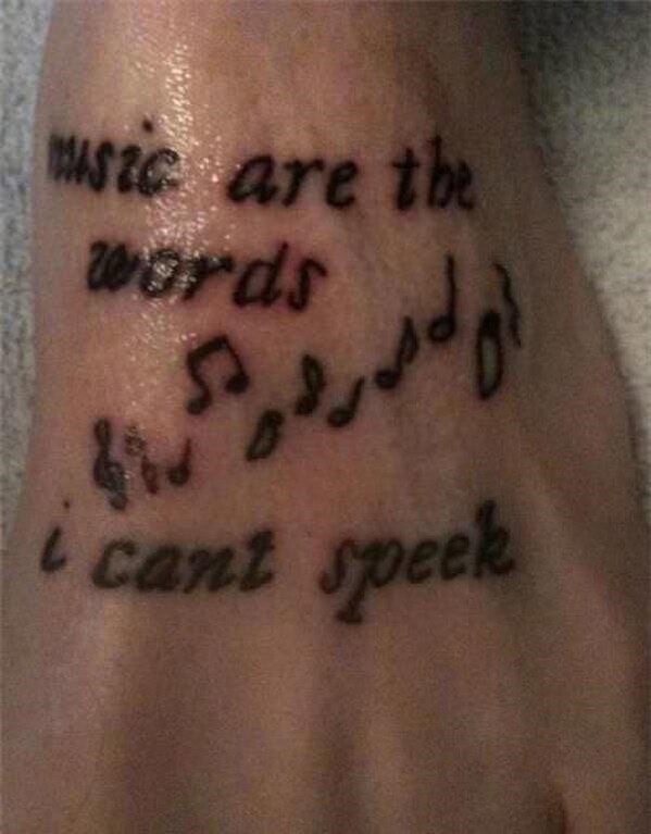 Just kidding, that was such a typo. These are by far, some of the WORST displays of artwork in general, not to mention the fact that they are on peoples bodies. The mental sentiment ment to be mustered upon viewing something special imprinted into ones skin just wastes away when the artist doesn’t know what he or she is doing. So we advise you, if you truly mean to get something meaningful, PLEASE do your research first… and learn to spell.