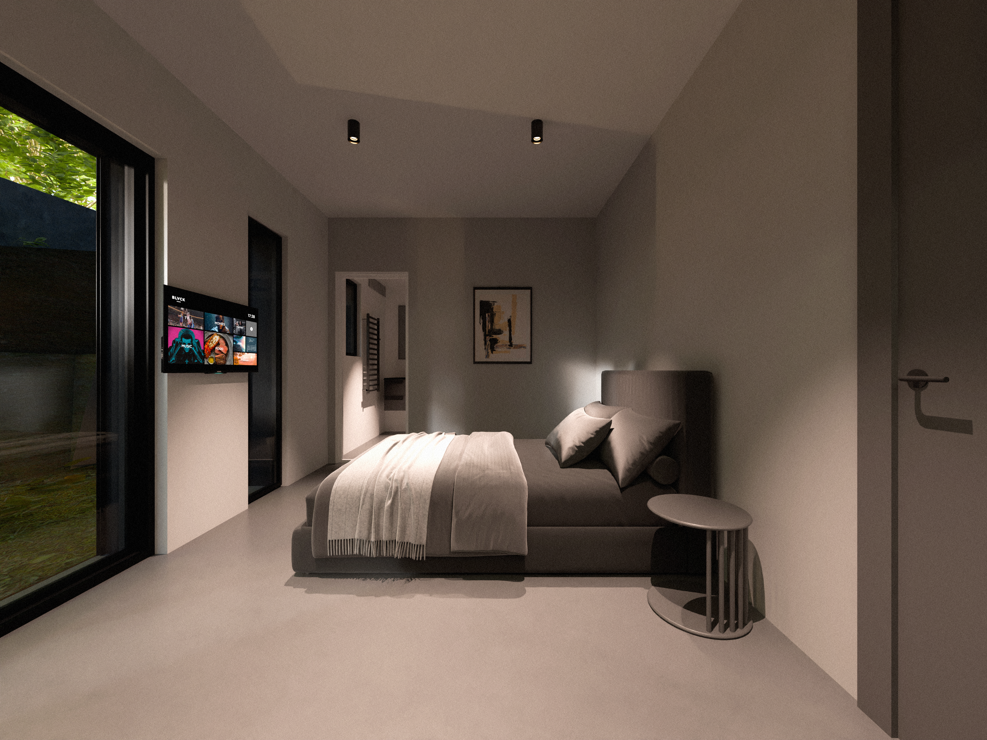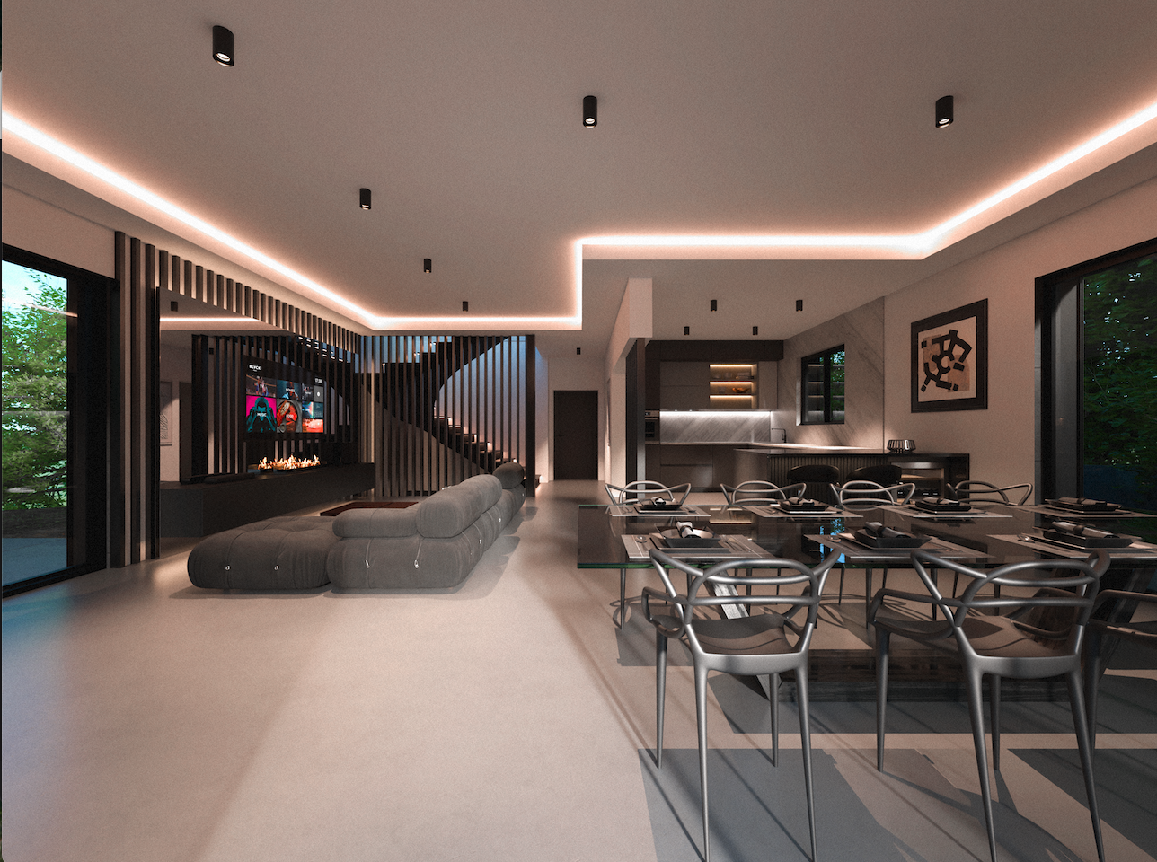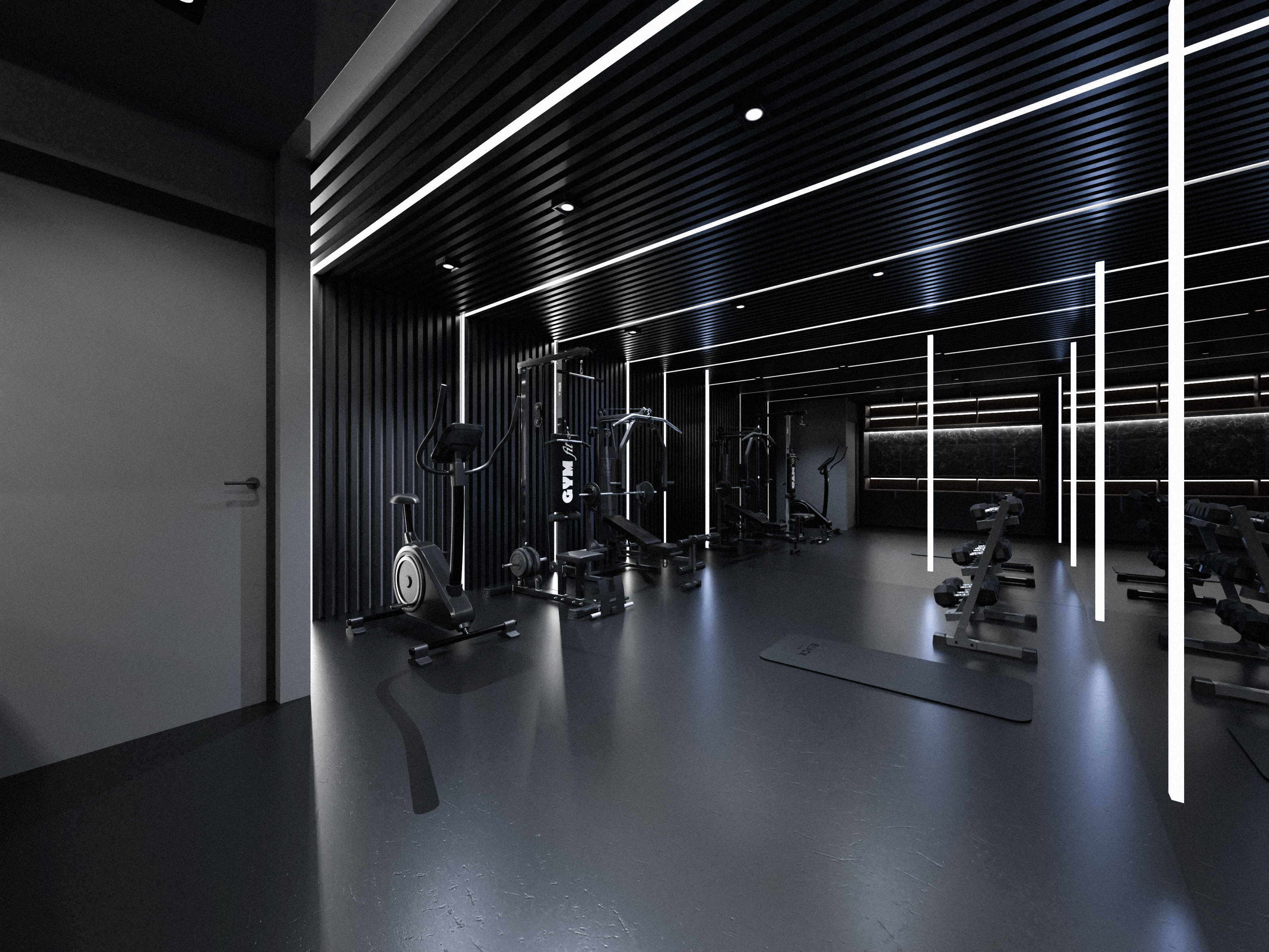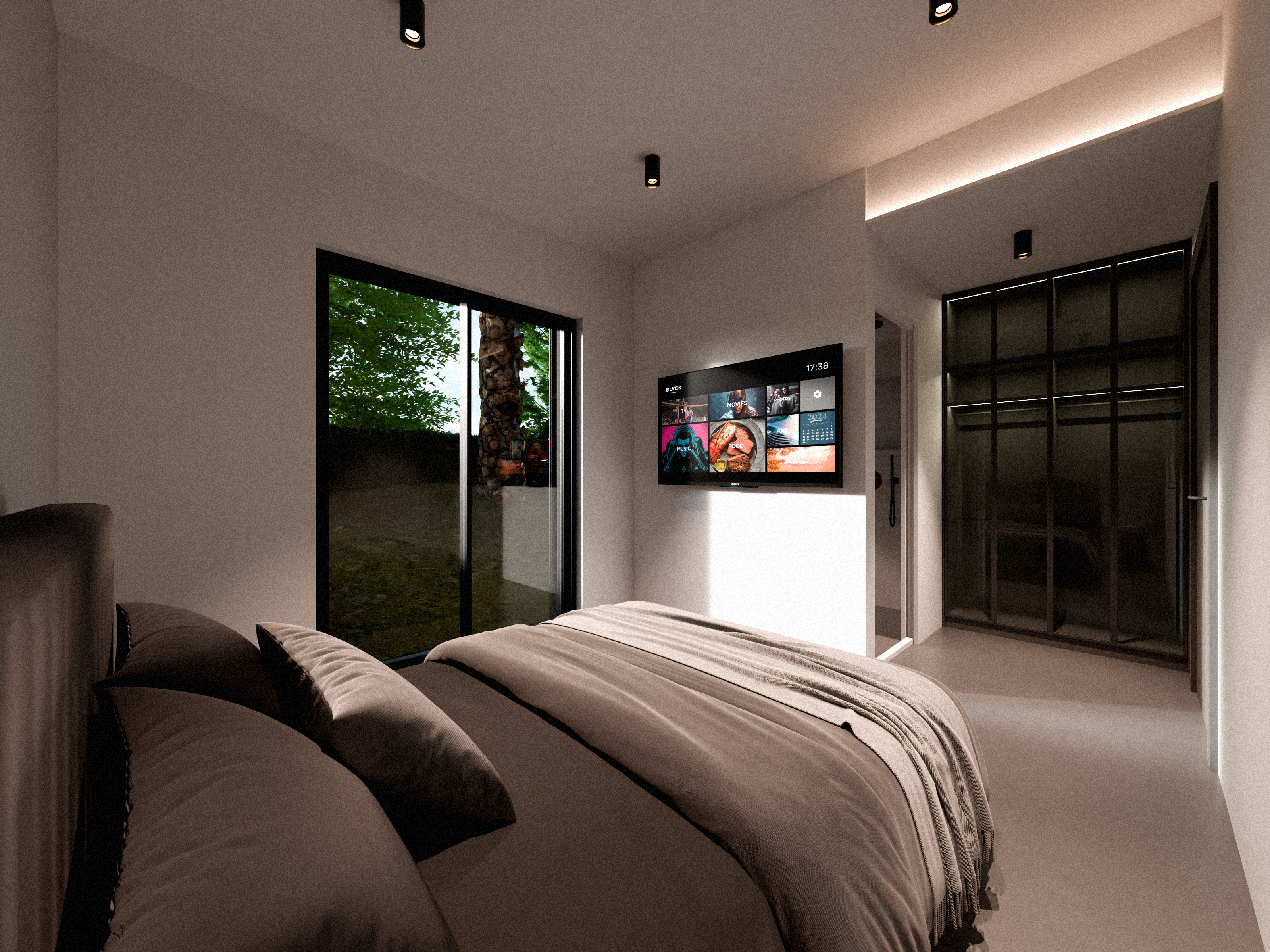The villa’s design draws inspiration from the tranquil and minimalist style of traditional Japanese architecture. The hallway is characterized by sleek, black linear slats that create a sense of depth and flow. The carefully selected artwork and understated decor enhance the refined elegance of the space, offering a modern yet timeless atmosphere that encourages moments of calm and contemplation. The entrance leads to four tastefully appointed guest rooms, with a cinema and fitness room located at the end.